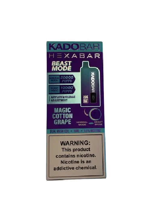 The Magic Cotton Grape Kado Bar is a premium vape from the Hexa X collection, delivering a delicious grape cotton candy flavor in every puff. With over 20,000 puffs per device and top-tier features, this vape combines flavor, performance, and durability all in one.